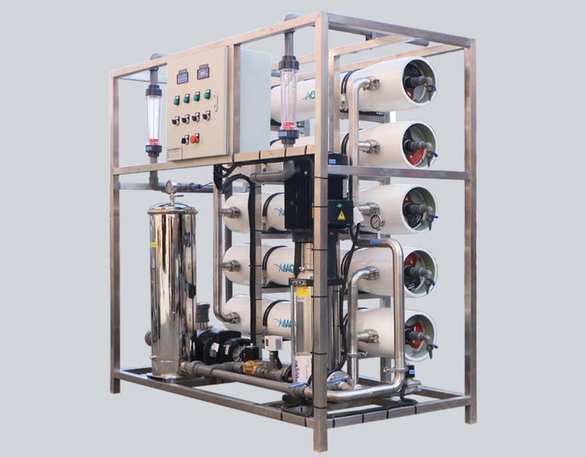 反滲透亦稱逆滲透(RO)。是用足夠的壓力使溶液中的溶劑(通常指水)通過反滲透膜(或稱半透膜)分離出來。因?yàn)樗妥匀粷B透的方向相反,故稱反滲透